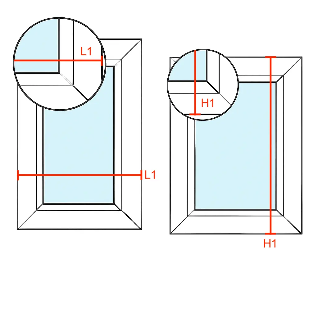 Rullaverho voidaan asentaa joko seinälle ikkunan aukon yläpuolelle tai ikkunasyvennyksen sisään, palteiden väliin. Molemmissa tapauksissa sinun tulee mitata ikkunan aukon leveys (L1) ja korkeus (H1).